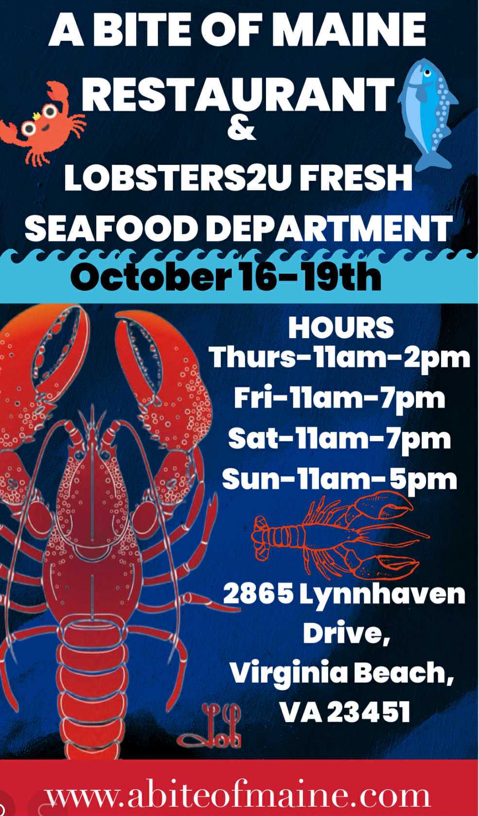 CALL WAYNE AT 757-581-5332 BY THIS THURSDAY @9PM TO RESERVE YOUR FRESH SEAFOOD. YOU CAN ALSO EMAIL US AT LOBSTERS2U@OUTLOOK.COM