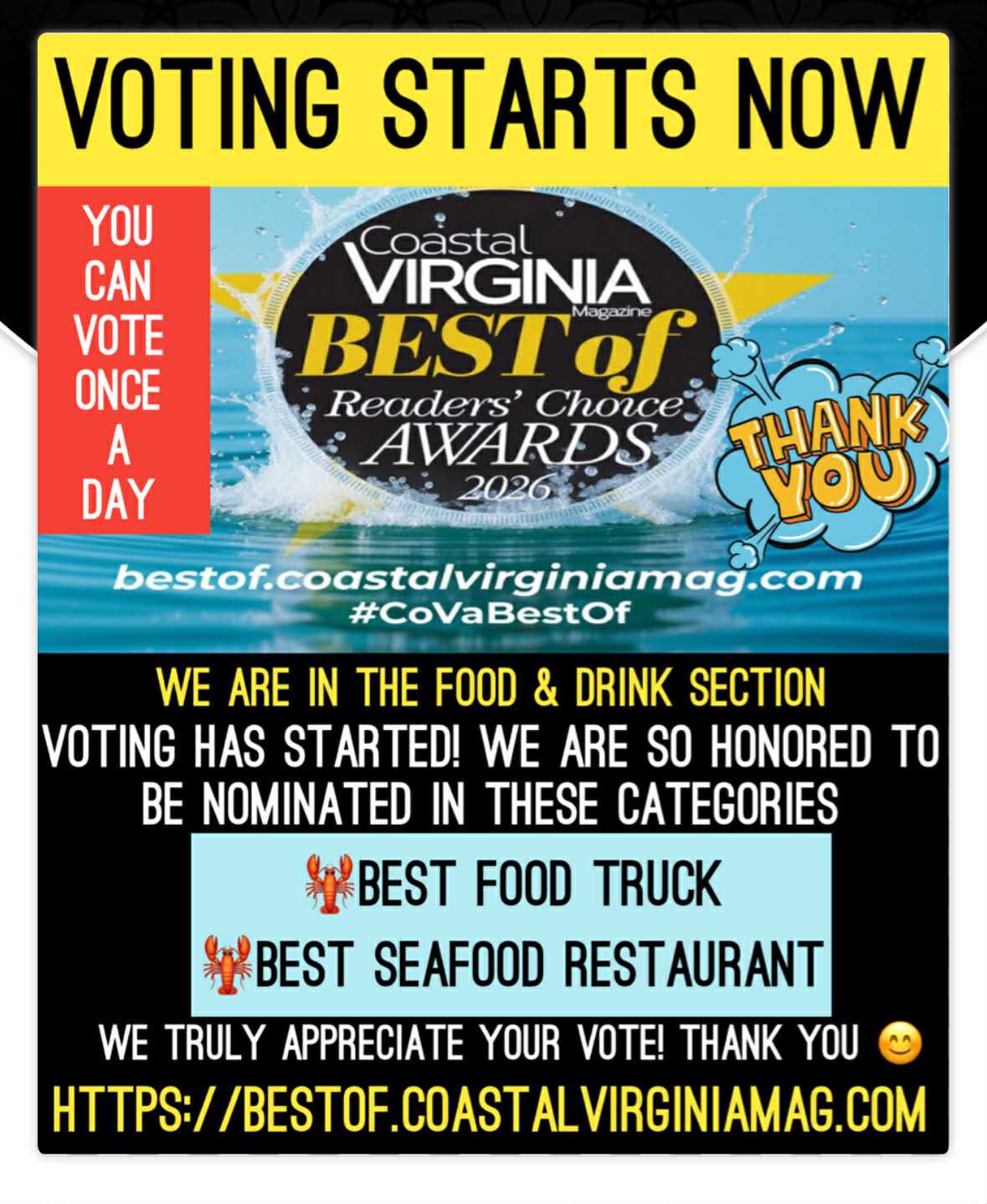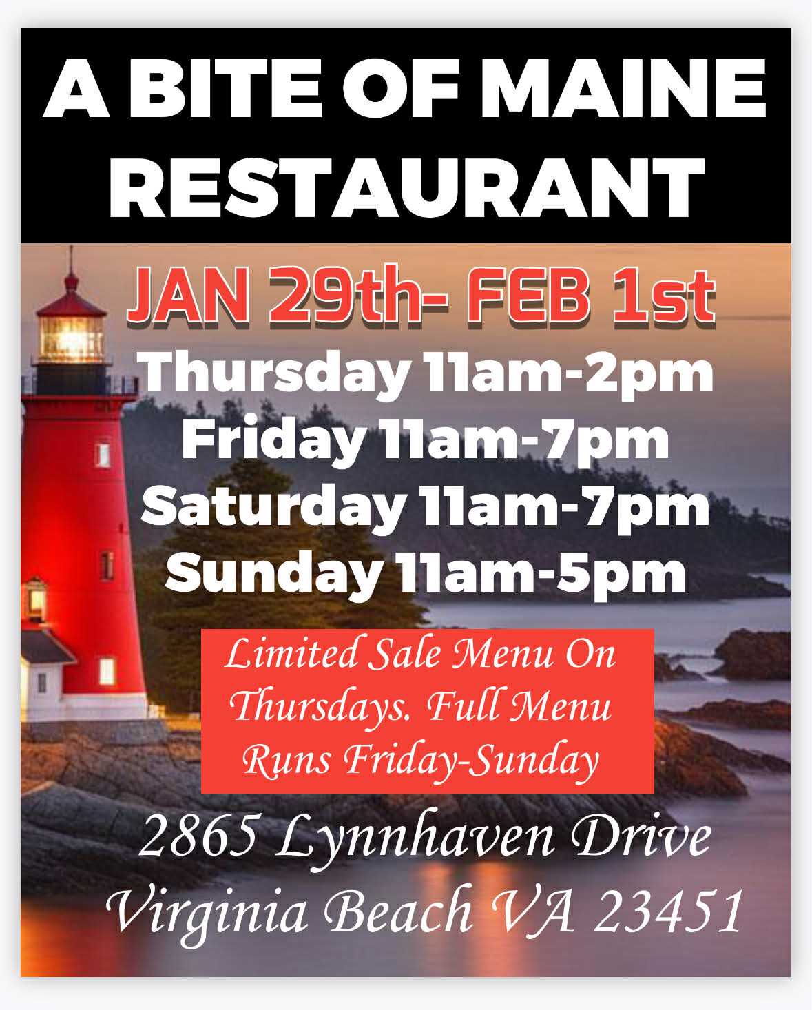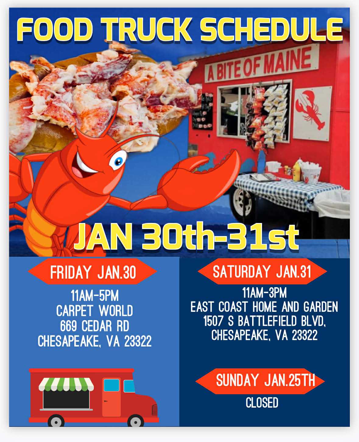 CALL WAYNE AT 757-581-5332 BY THIS THURSDAY @9PM TO RESERVE YOUR FRESH SEAFOOD. YOU CAN ALSO EMAIL US AT LOBSTERS2U@OUTLOOK.COM