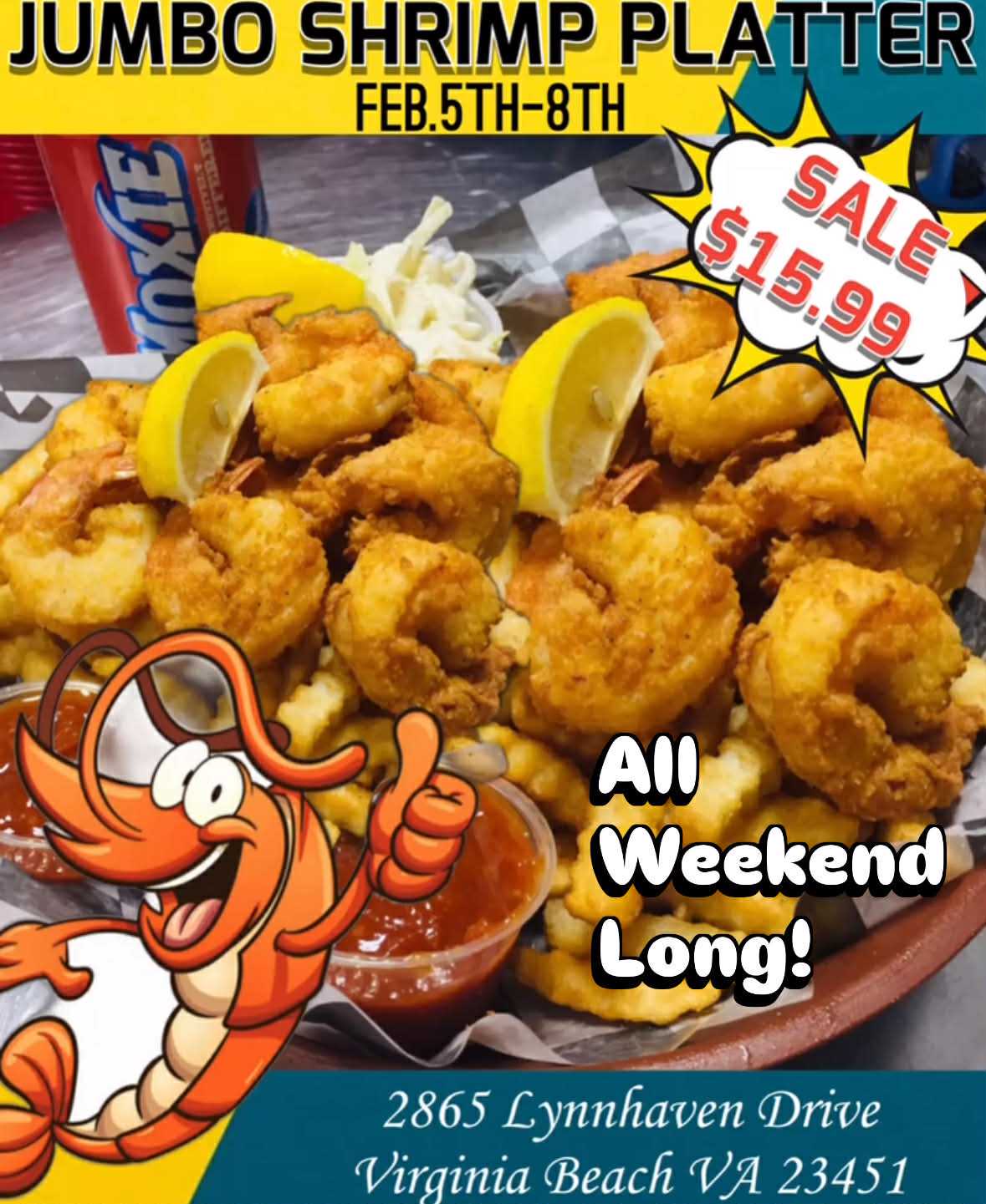 GET THESE ON SALE FOR ONLY $9.99 EVERY SATURDAY ON OUR "SHRIMP SATURDAYS"